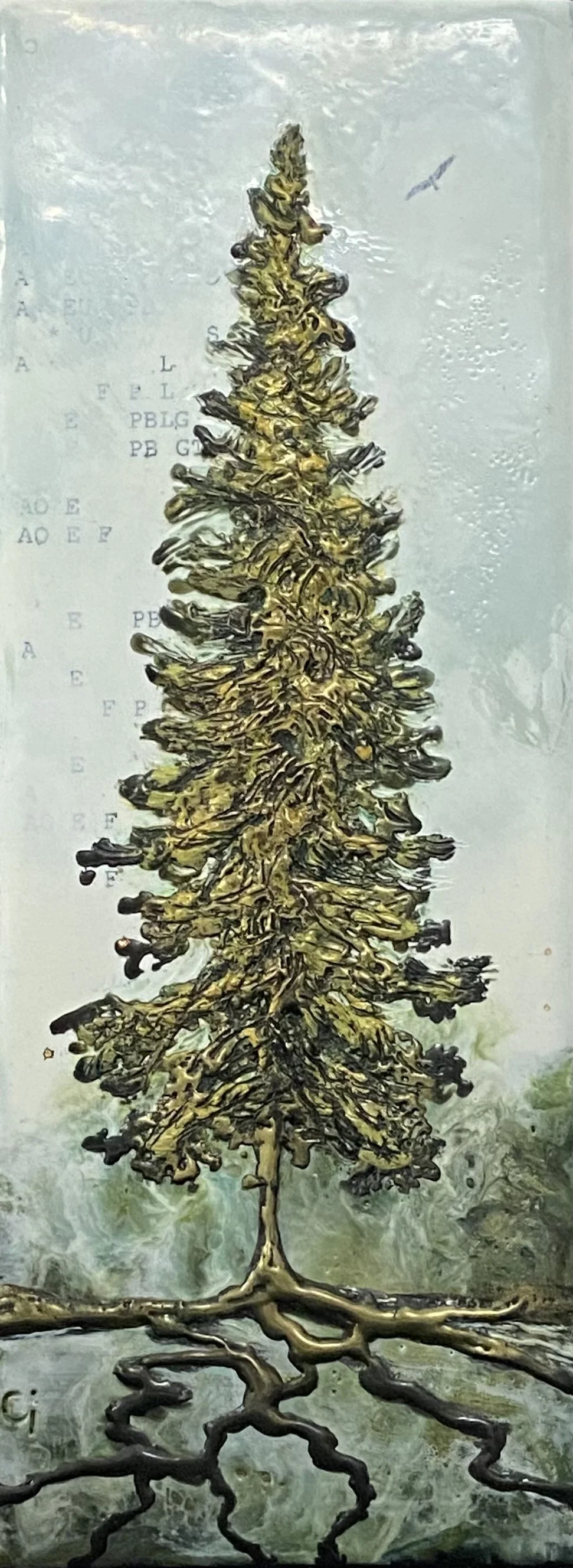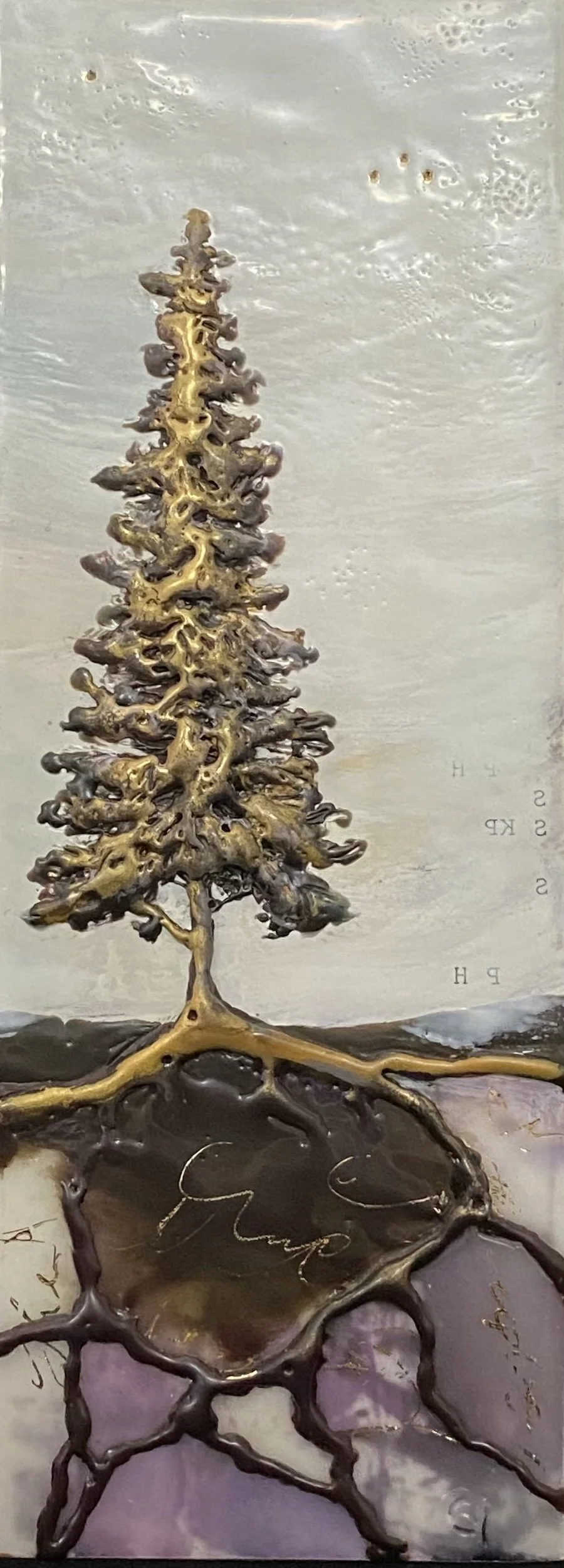 encaustic and metal - mixed media on cradle board