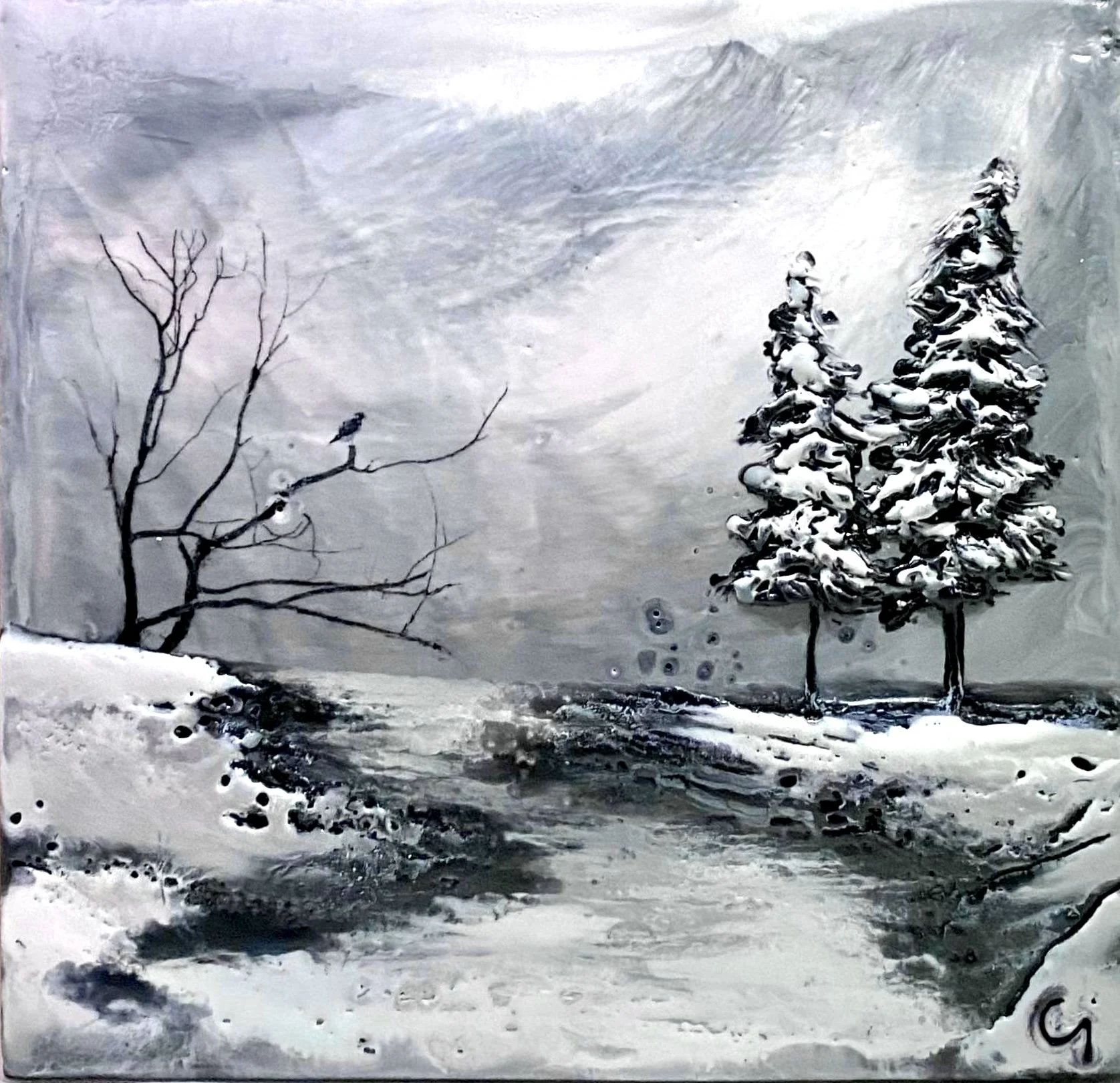 3x8” Encaustic Mixed Media on Deep Cradle Board