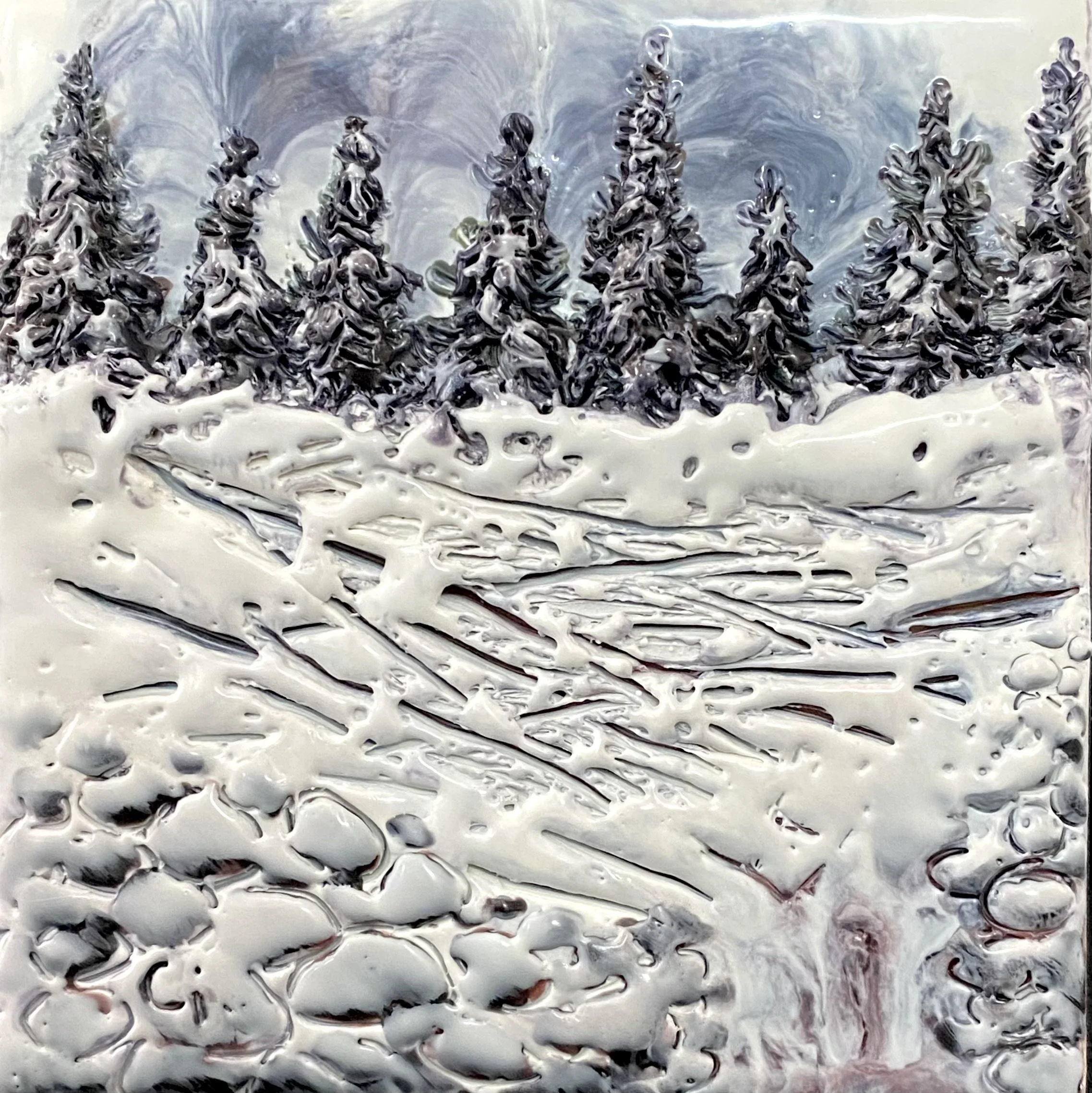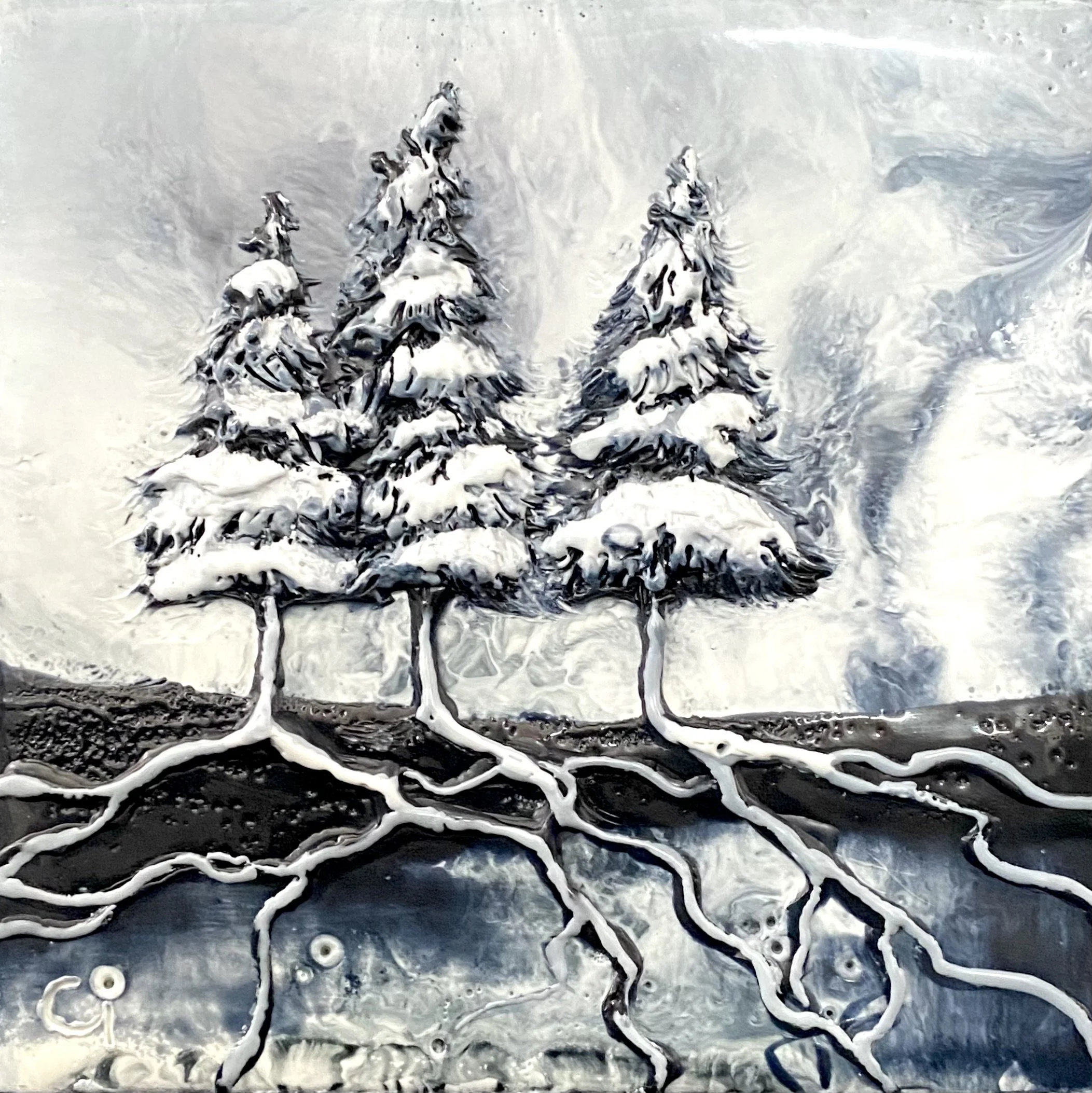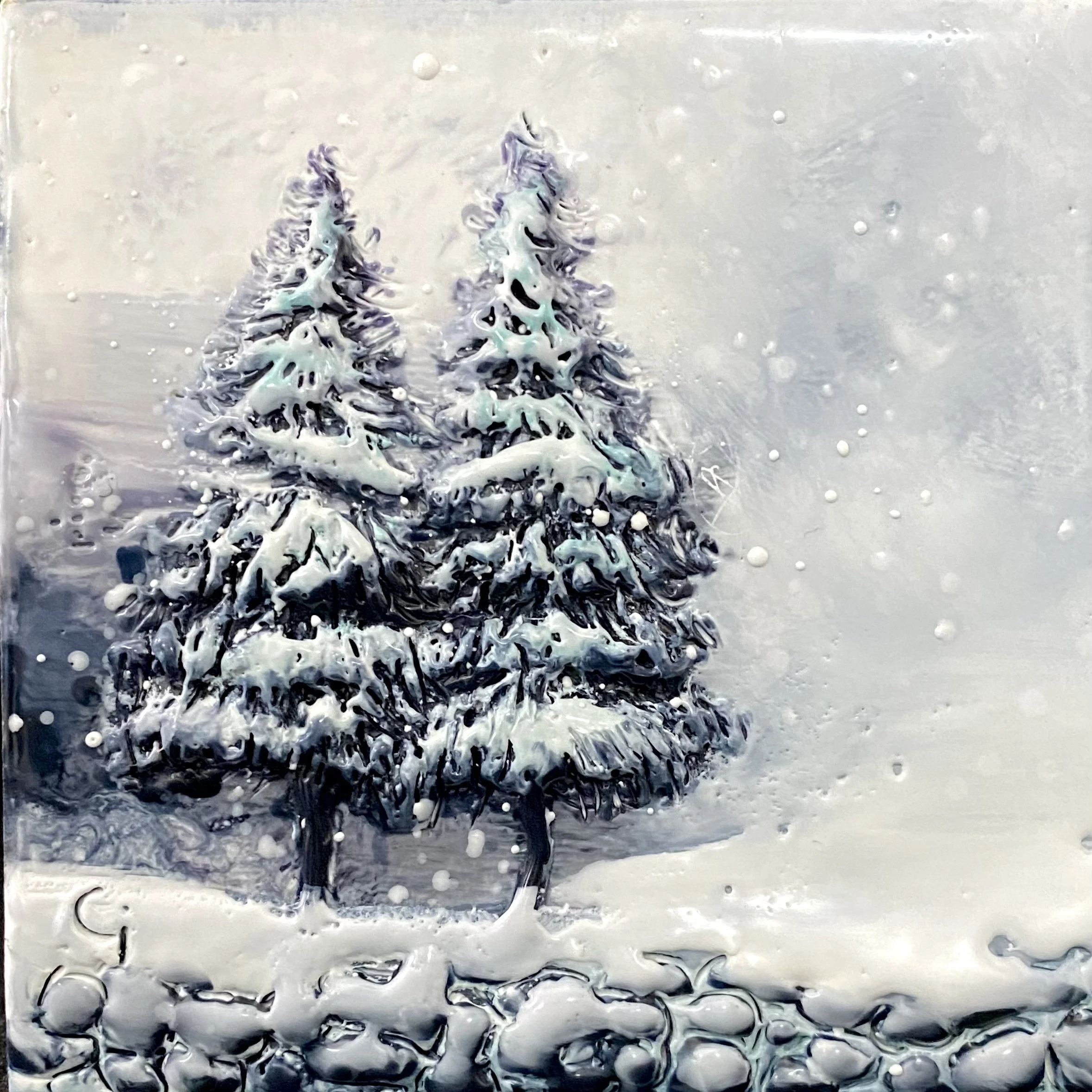 4x4” Encaustic Mixed Media on Pine Block