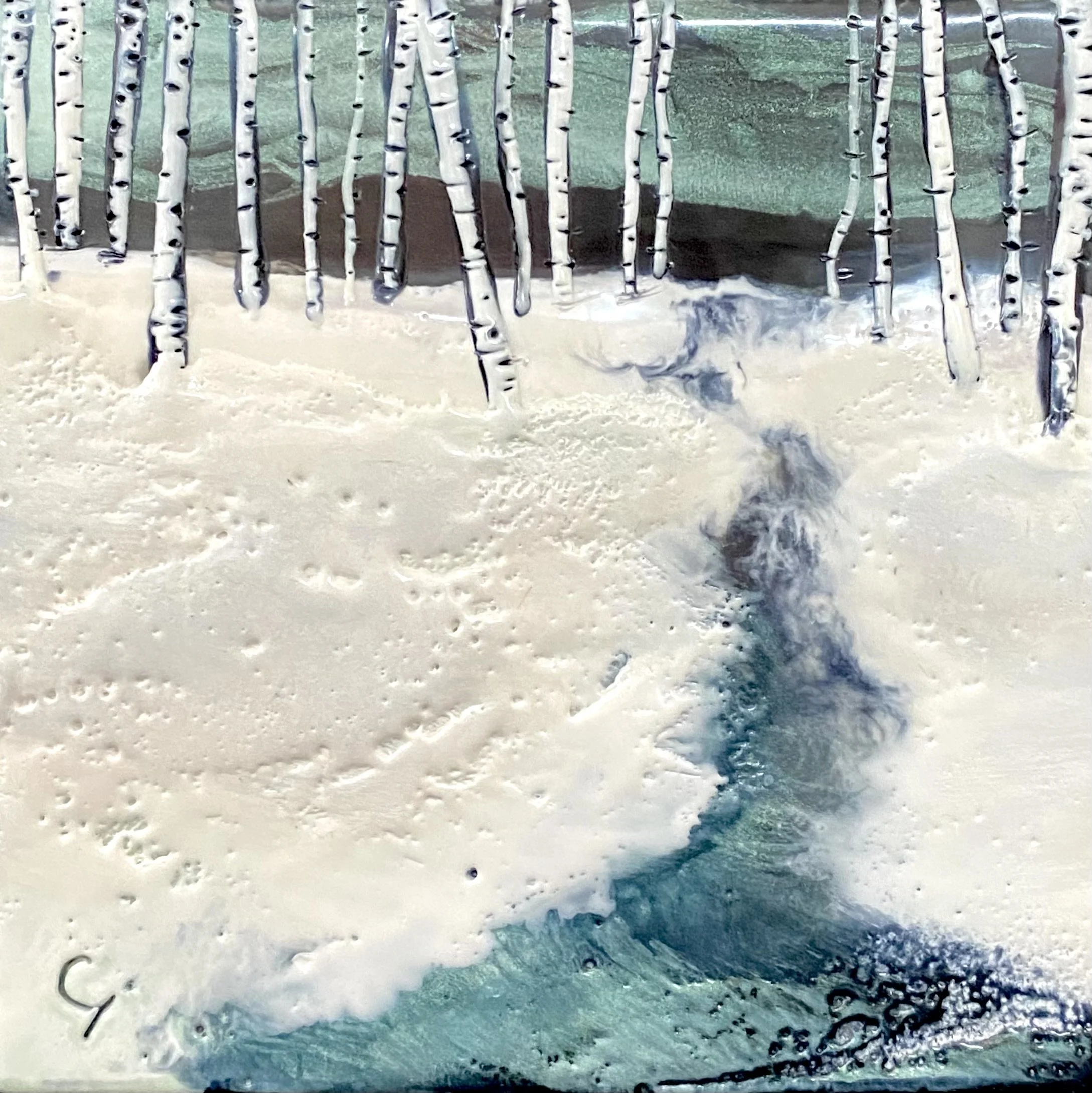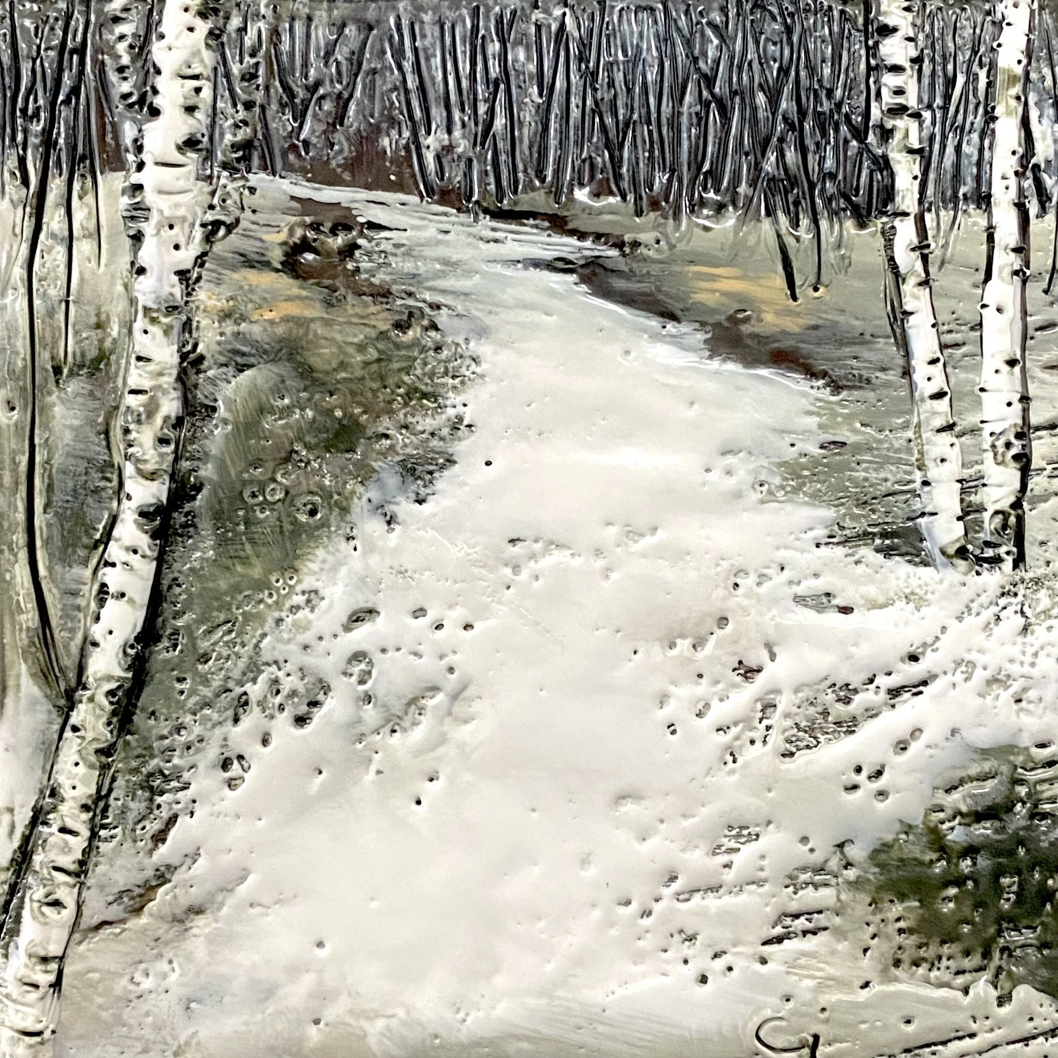 6x6” Encaustic Mixed Media on Cradle Board